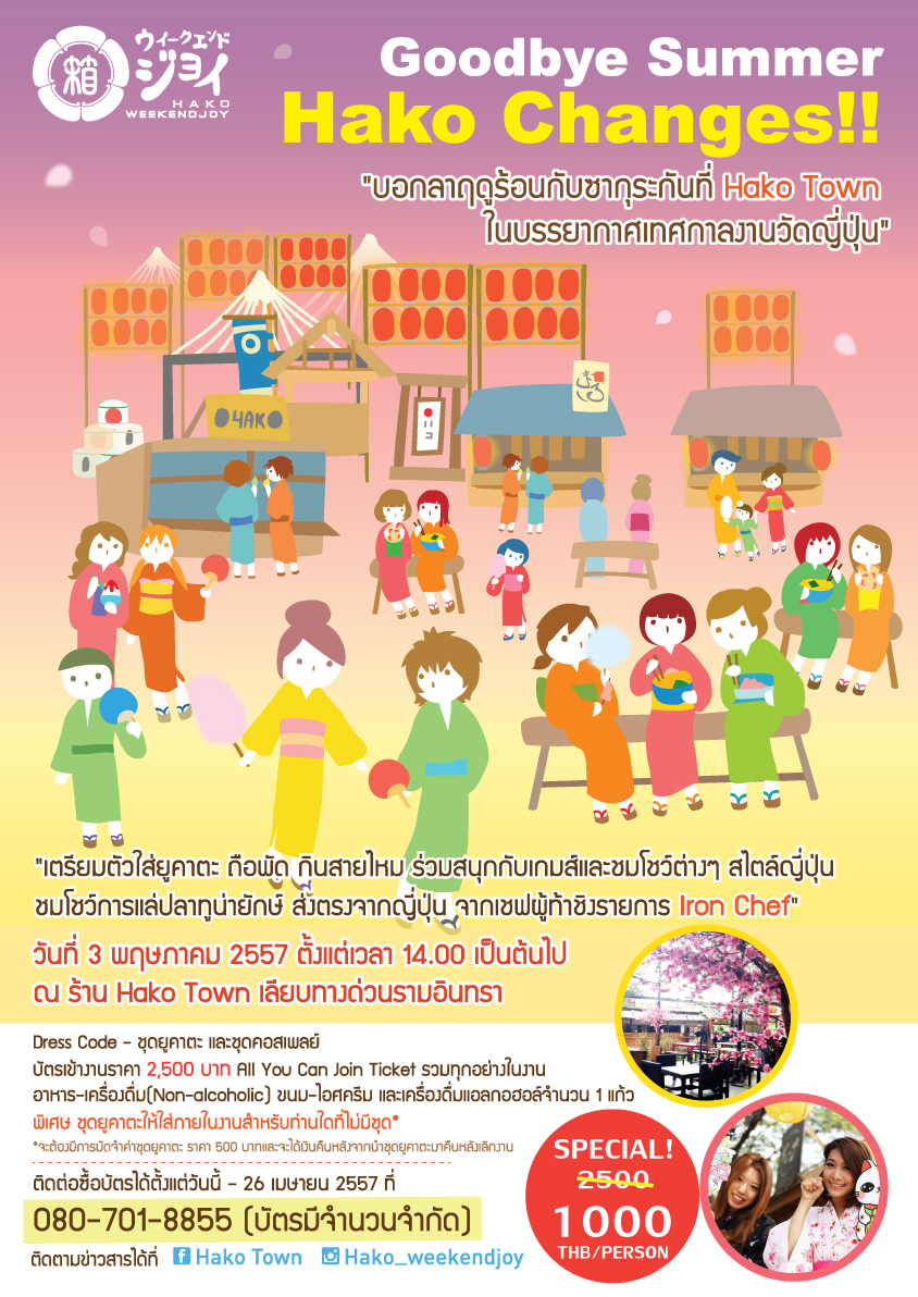 วันที่ 3 พฤษภาคม 2557 นี้แล้วละครับ ทางร้านจะจัดเป็นงานเลี้ยงบอกลาฤดูร้อนกับซากุระกันที่ Hako Town