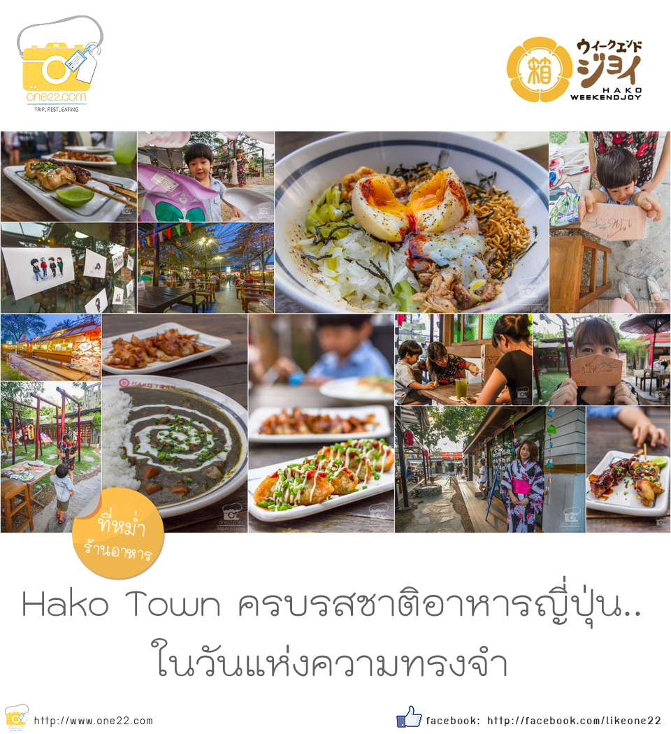 สวัสดีครับ วันนี้ one22.com จะขอเปลี่ยนบรรยากาศพามาหา อาหารญี่ปุ่น อร่อยๆในเมืองหม่ำกัน หากจะว่ากันจริงๆแล้ว อาหารญี่ปุ่นในบ้านเราคนไทยนิยมกันแทบเกือบทุกประเภทของเค้า จะเป็นเมนูใดๆที่เป็นของญี่ปุ่น บ้านเรามีไม่น้อยหน้าประเทศแม่เค้าเลย ทั้งซูชิ ปลาดิบ ราเม็ง ชาบู ฯลฯ และอีกมากมายเกินจะสาธยายได้หมด และจะดีแค่ไหนหากจะมีที่ๆนึงรวมอาหารหลากหลายแนวของ อาหารญี่ปุ่น มารวมไว้ที่เดียวกันแบบไม่ต้องตระเวณกินให้เสียเวลา และวันนี้ครอบครัว one22 ขออาสาพามา เมืองอาหารญี่ปุ่น ในย่านที่ไม่ใกล้ไม่ไกลอย่าง เส้นเลียบ เอกมัย-รามอินทรา กับ “Hako Town ” จะเป็นยังไงมาตามไปเที่ยวกับบ้านเรากันนะครับ ^ ^