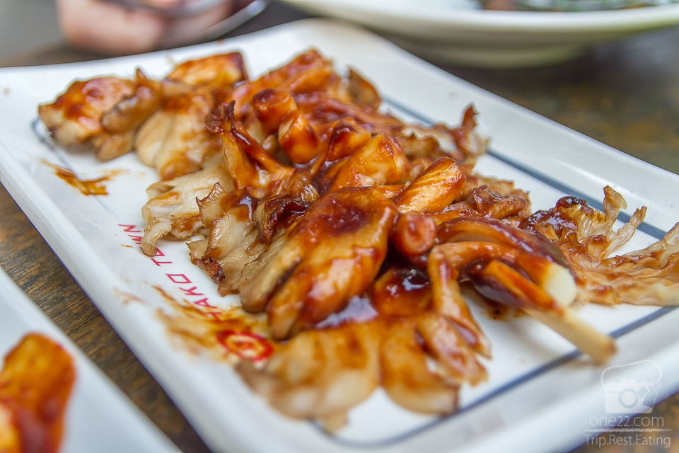 มาต่อด้วยเมนูปิ้งย่างกันบ้างกับร้าน Kushi Maru เป็นร้านแนวปิ้งย่างเมนูที่เราสั่งมาก็คือเห็ดเก็บสดย่างถ่านซอสญี่ปุ่น เมนูเห็ดสารพัดที่ลูกค้าสามารถเลือกได้เองเพราะที่นี่เค้ามีสถานีเห็ดที่เพาะกันเอง แล้วนำมาย่างเสริฟลูกค้าได้ทันใจ ผมชิมไม้นี้แล้วก็ชอบครับ ซอสที่ราดไม่หวานเกินไป อร่อยดี