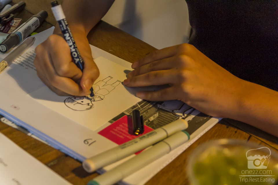 ที่นี่นอกจากจะมีอาหารให้เลือกกันเกือบครบทุกประเภทแล้ว ทุกๆสัปดาห์เค้ายังมีจัด event ใหม่ๆเสมออย่างสัปดาห์ที่เราไปมีจัดให้คุณปลาจาก page #Plariex มาวาดการตูนให้กับทุกๆคนที่มาอาหารในวันนั้น เล่นเอาคิวยาวทีเดียว