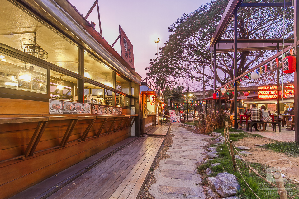 มองจากมุมที่เรานั่งทานกัน ผมว่าดูๆไปคล้ายคลึงร้านอาหารริมทางที่ญี่ปุ่นเหมือนกันนะครับ ใครจะรู้ว่าทุกๆร้านใช้ ตู้ Container มาดัดแปลงหมดเลย เรียกว่าผ่าตัดจนไม่เหลือความเป็นตู้กันเลยครับ ไอเดียดีทีเดียว