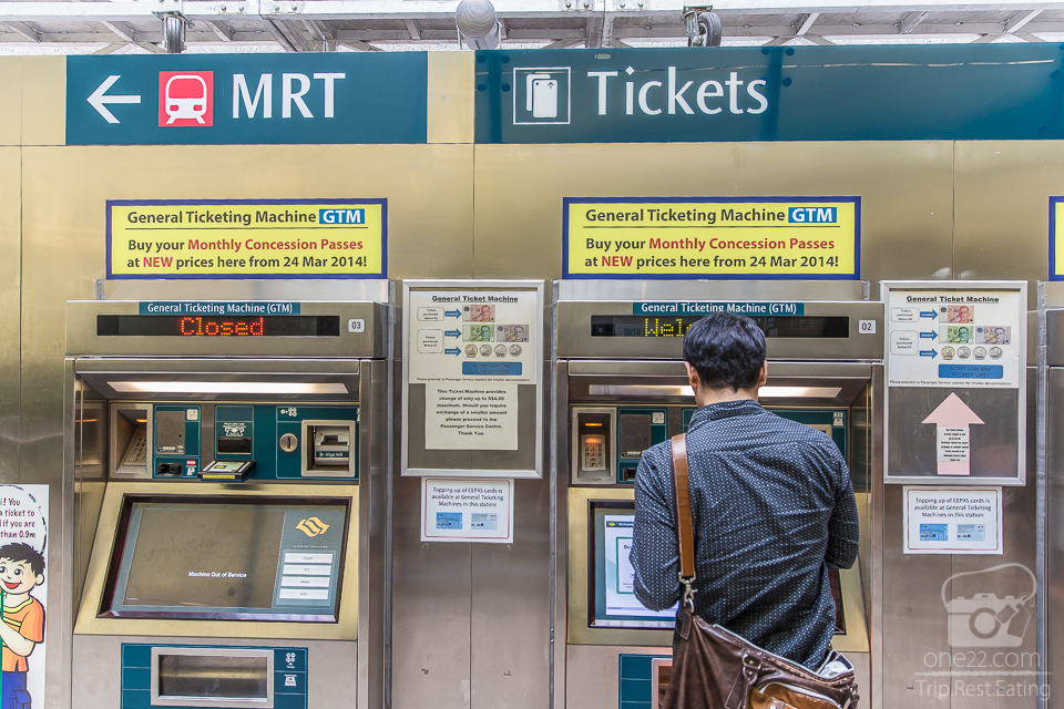 ที่สิงคโปร์คือเมืองแห่งรถไฟฟ้าโดยแท้ มีความคล้ายกันกับ ทั้งของไทยเราและมาเลเซีย ที่ผมเคยไปมา ทุกๆจุดที่สำคัญในเมืองล้วนเดินทางได้ด้วย MRT ทั้งหมด เราสามารถซื้อตั๋วได้ทั้งจากตู้ขายอัตโนมัติแบบนี้ หรือจะซื้อจากช่องขายตั๋วที่มีพนักงานนั่งอยู่ก้ได้เหมือนกัน