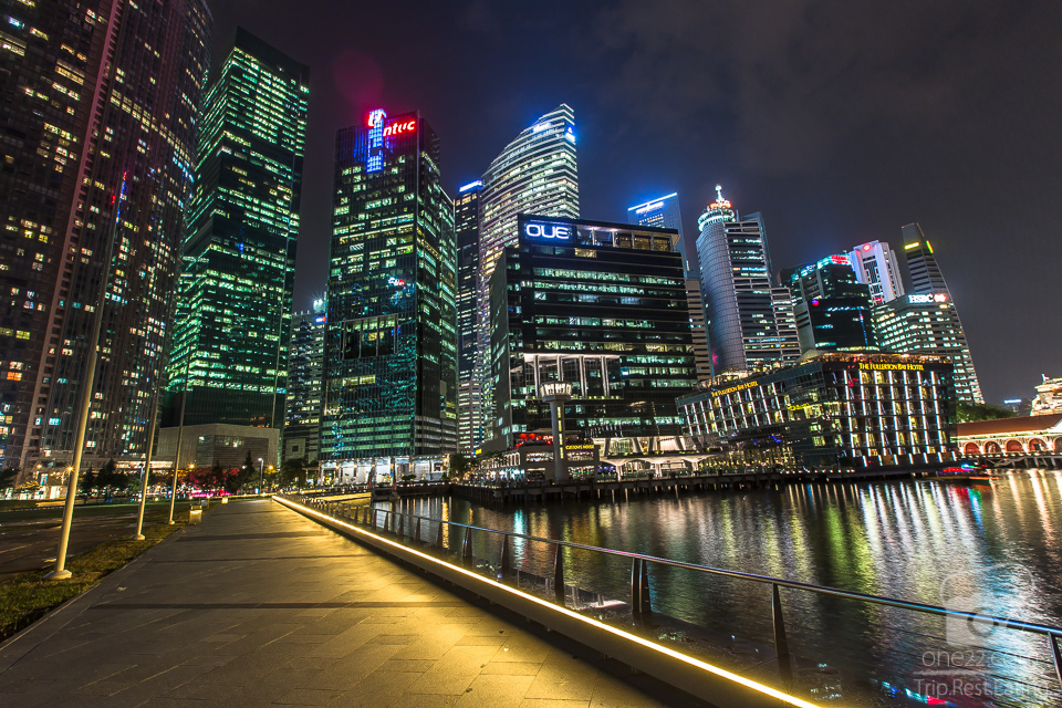 หลังจากเก็บของกันเรียบร้อย ตอนนี้เวลาเกือบ 1 ทุ่มแล้ว เป้าหมายของเราวันแรก จะเป็นที่ไหนเป็นไม่ได้ ให้คุณๆเดาก็คงไม่ยากว่าเป็น “มารีน่าเบย์” เรานั่งรถไฟฟ้ามาลงที่สถานี Marina Bay เลยแต่เพราะความที่ไม่เคยมา เข้าใจว่าชื่อสถานีนี้ คือโผ่ลมาก็เจอเลย แต่เอาเข้าจริงๆ ต้องเดินกันอีกเกือบ กิโลเลยเชียวกว่าจะได้เห็นอ่าวกัน
