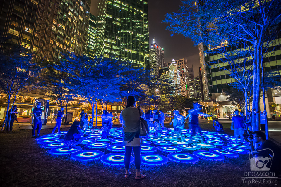 รอบๆมีงานแสดงแสงสีในสวนที่น่าสนใจมาก มีเด็กๆและผู้ใหญ่ยืนชมกันมากมาย
