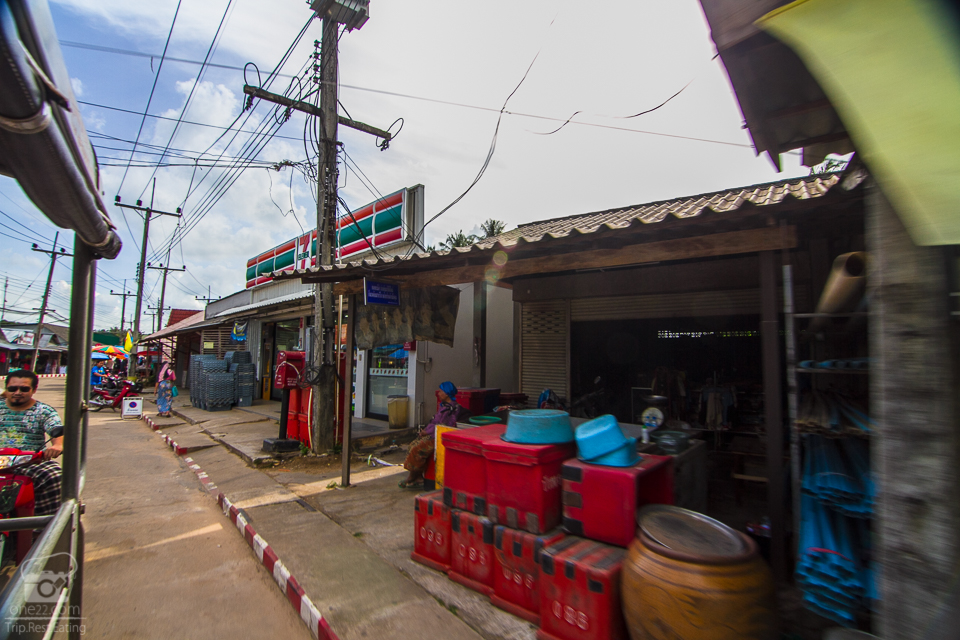 หลังตกลงกันได้เราก็ไปผ่านจุดแรกก่อนคือตลาดครับ ตลาดที่นี่จะอยู่ริมฝั่งสองข้างทางห่างจากท่าเรือมาไม่ไกล ถือเป็นตลาดสำคัญทีเดียวเพราะมี 7-11 อ่ะอ่า อย่างงว่าทำไม 7-11 ถึงสำคัญ เพราะทั้งสองเกาะนี้มีเพียงแค่ทีเดียวเท่านั้น น้องไกด์เค้าเล่าว่าสมัยหลายปีก่อนตอนที่มาเปิดใหม่คนมายืนรอเข้าคิวแต่งตัวกันสวยงามเหมือนเวลาห้างสรรพสินค้าในเมืองที่เปิดตัววันแรกยังไงยังงั้นเลย และเรียกว่าของขายหมดกันตั้งแต่วันแรกที่เปิดกันเลย อันนี้ไม่รู้จริงหรือเท็จเพราะฟังเค้ามาอีกที ถ้าจริงก็น่ารักกันมากเลยครับ