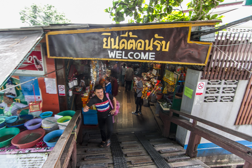 มาถึงเราเอารถจอดที่บิ๊กซีบางพลีแล้วมาเดินข้ามสะพานเรือ คือด้านหลังที่จอดติดคลองสำโรง ชาวบ้านจึงใช้วิธีอำนวยความสะดวก สำหรับผู้ที่อยากเดินทางมาตลาดน้ำโบราณบางพลีได้ง่าย