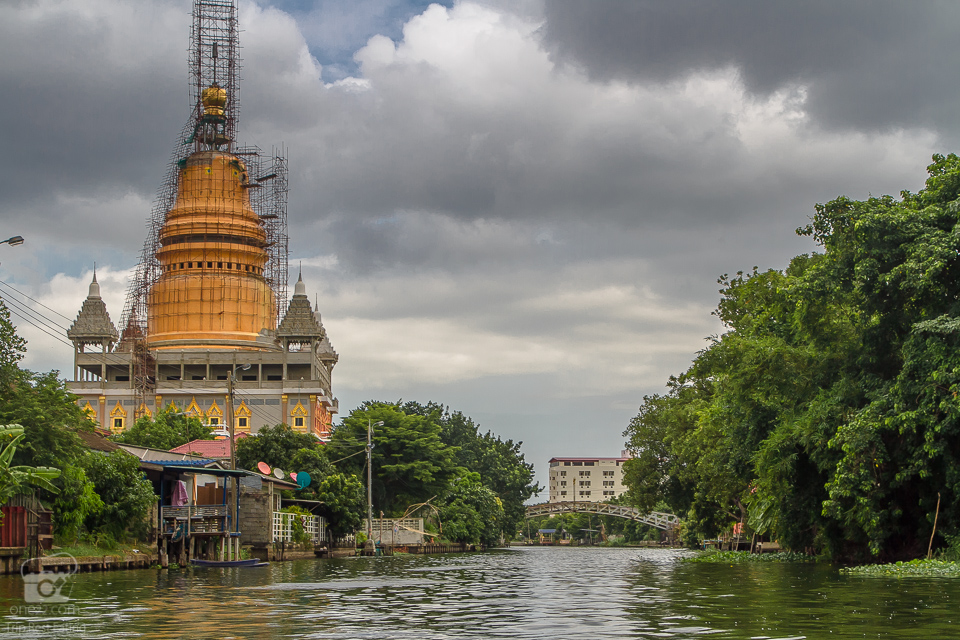 นั่งมาซักพักจนผ่านตรงวัดบางพลีใน ที่กำลังบูรณะเจดีย์องค์ใหญ่ตั้งตระหง่านอยู่ริมแม่น้ำอย่างที่เห็น