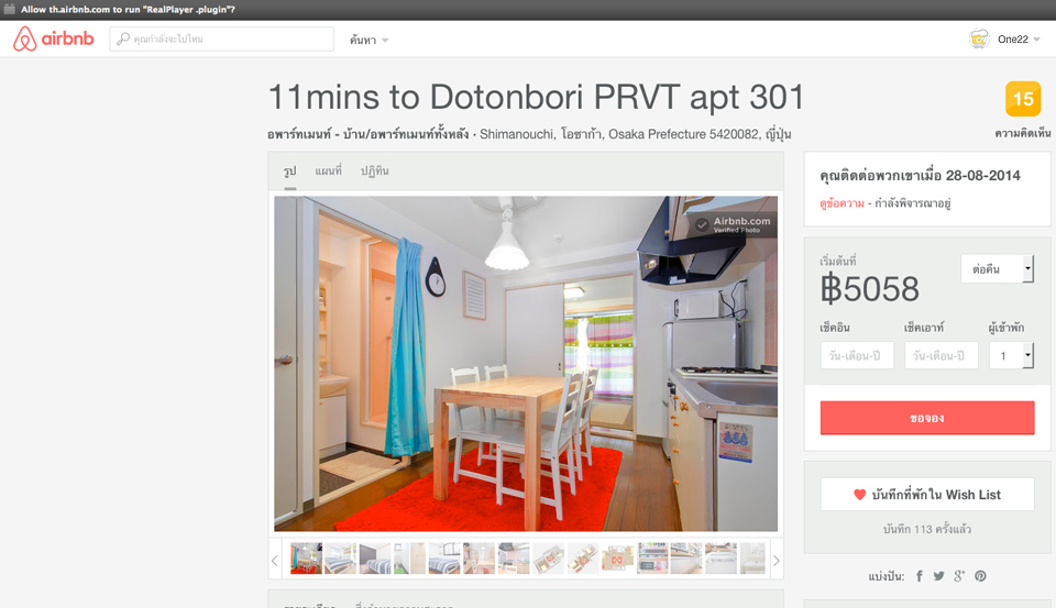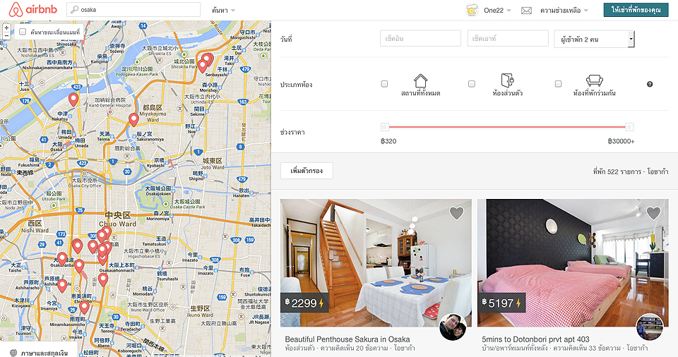 3.ที่พัก ที่ตรงกับเงื่อนไขของเราก็ขึ้นมาเพียบเลย หลังเลือกที่ถูกใจได้ก็เช็ควันที่เข้าพักอีกนิด แล้วก็ติดต่อกับ Host (เจ้าของที่พักที่เราจะไปใช้นั้นละ) อย่างกรณีเราเลือก โอซาก้าที่พัก ของ Airbnb เยอะและดีมาก เลือกดูจากภาพถ่ายได้เลย