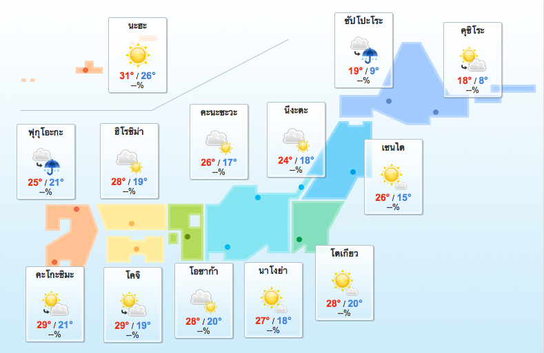 http://www.jnto.go.jp/weather/tha/ อันนี้เป็นภาษาไทยครับของการท่องเที่ยวญีปุ่นทำขึ้นมา ตอนไปผมก็ดูอันนี้ละ