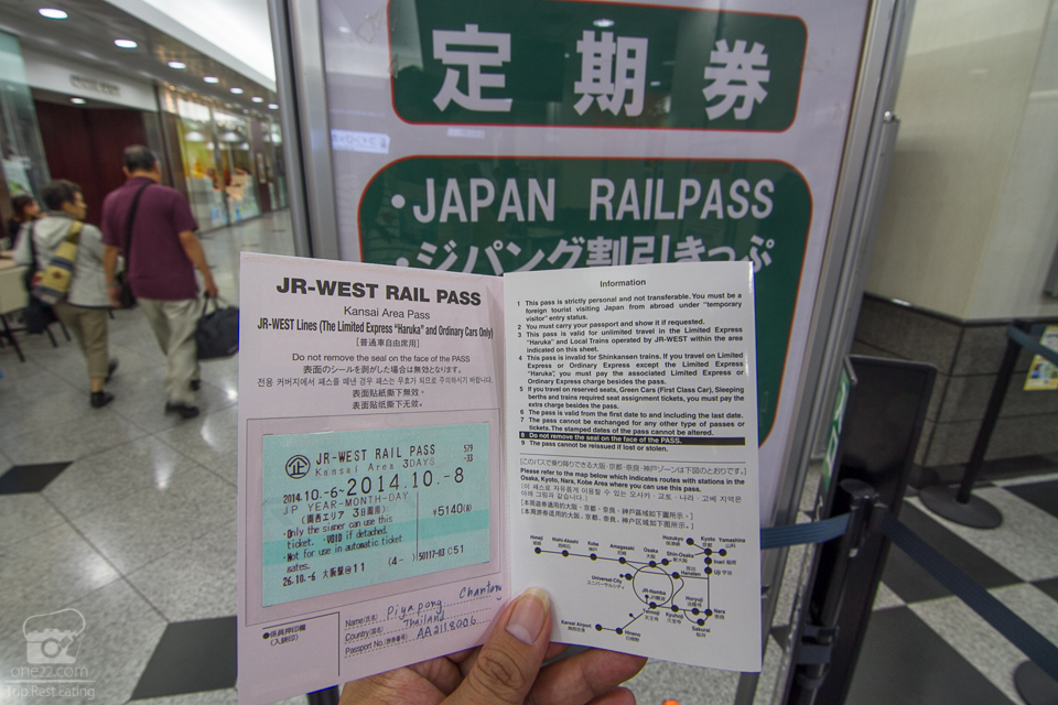 เส้น JR Kansai Area Pass จริงๆราคามีตั้งแต่แบบ 1day ไปจนถึง 4 day แบบที่ผมใช้คือ 3 Day 5000 เยน พอไปถึงที่นู่น บัตร JR Pass ของเรายังใช้ไม่ได้ต้องไปติดต่อที่ Counter JR Central Center ที่สถานี Osaka Station ก่อนเพื่อให้เจ้าหน้าที่ออกตั๋วให้เราอีกที