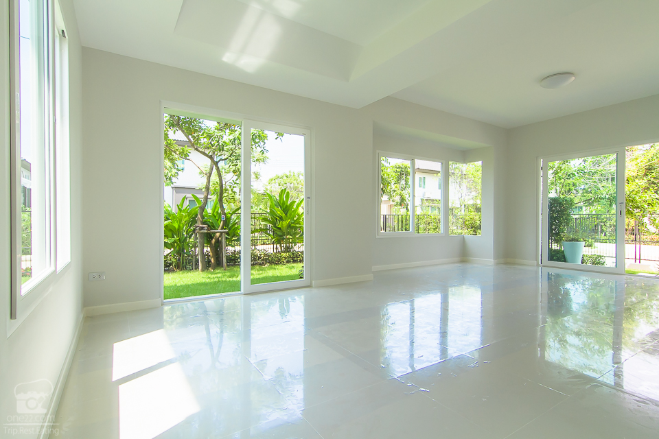 มาดูในบ้านบ้าง ส่วนของห้องนั่งเล่นกว้างกว่าแบบ Cedar รู้สึกได้และด้านข้างก็มีประตูเปิดรับลมและแสงได้ดีเช่นกัน อยู่ที่เราจะตกแต่งยังไงแล้วละครับ