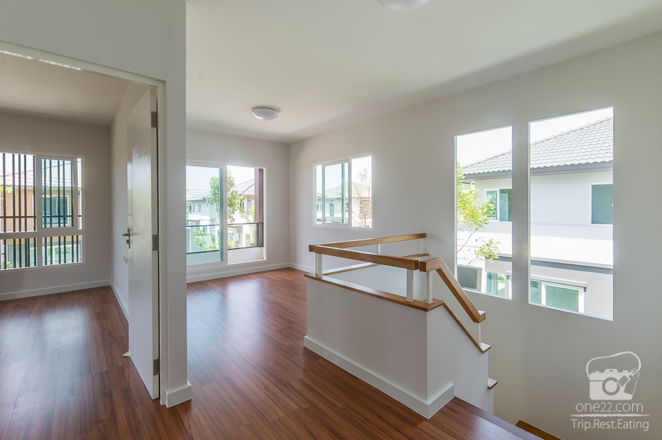 ด้านบนบ้านปูพื้นลามิเนต กว้างขวางดีครับ แยกออกเป็น 3 ห้องนอน และส่วนสำหรับนั่งเล่นติดกับระเบียง