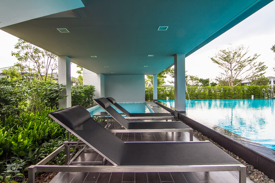 ริมสระมีที่นั่งพักผ่อนด้วยหย่อนใจยิ่งในยามเย็นแบบนี้ชวนให้รู้สึกผ่อนคลายเหมือนกันนะครับเนี่ย
