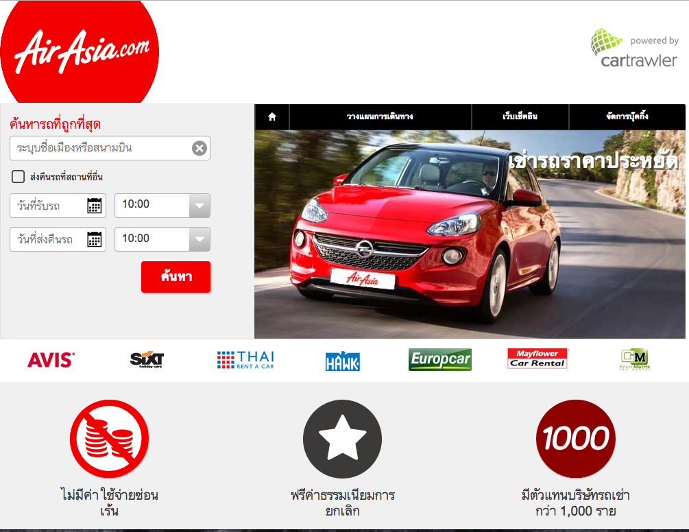 ขั้นตอนก็ง่ายๆครับ เข้าไปหน้าเว็บ Airasia.com มองหา Banner จะอยู่บริเวณด้านล่างของหน้าแรกเว็บเค้าเลย รูปรถนั้นแหล่ะกดเข้าไปเลย