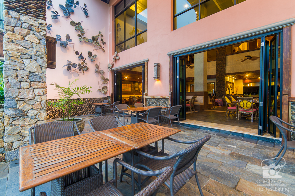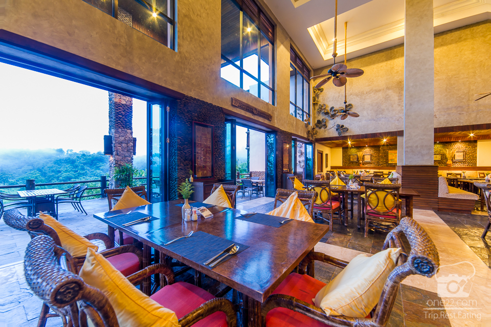 มาถึงอาหารบ้าง ที่ห้องอาหารเน้นความสูงเป็นอีกที่ๆวิวงามไม่แพ้กัน The Terrace Restaurant เป็นห้องอาหารหลักของรีสอร์ท ตกแต่งอลังการเป็นไปในแบบบ้านในป่าใหญ่ทั้งแข็งแรง ดูสวยงาม