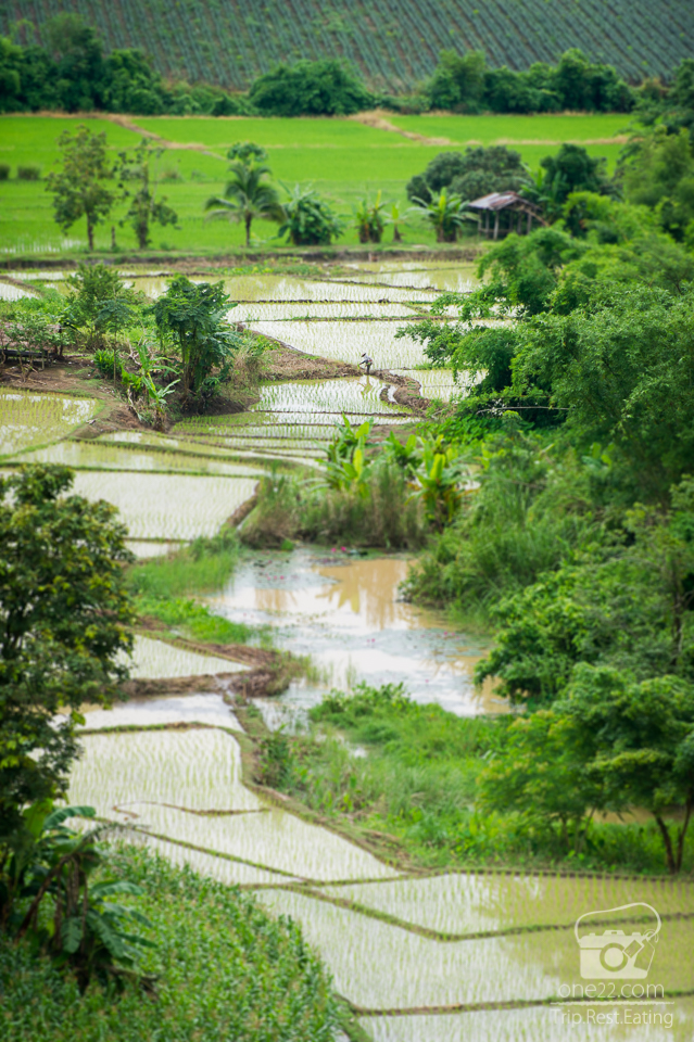 มีบรรยากาศนาข้าวให้ดูช่วงที่ไปเป็นช่วงกลางหน้าฝนนาข้าวจึงชุ่มช่ำไปด้วยน้ำเต็มท้องนา