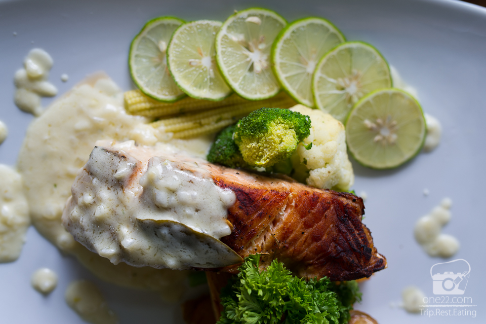 มาต่อที่อาหารฝรั่งบ้าง เช่น เสต็กปลาแซลม่อนจานนี้อร่อยมากครับ
