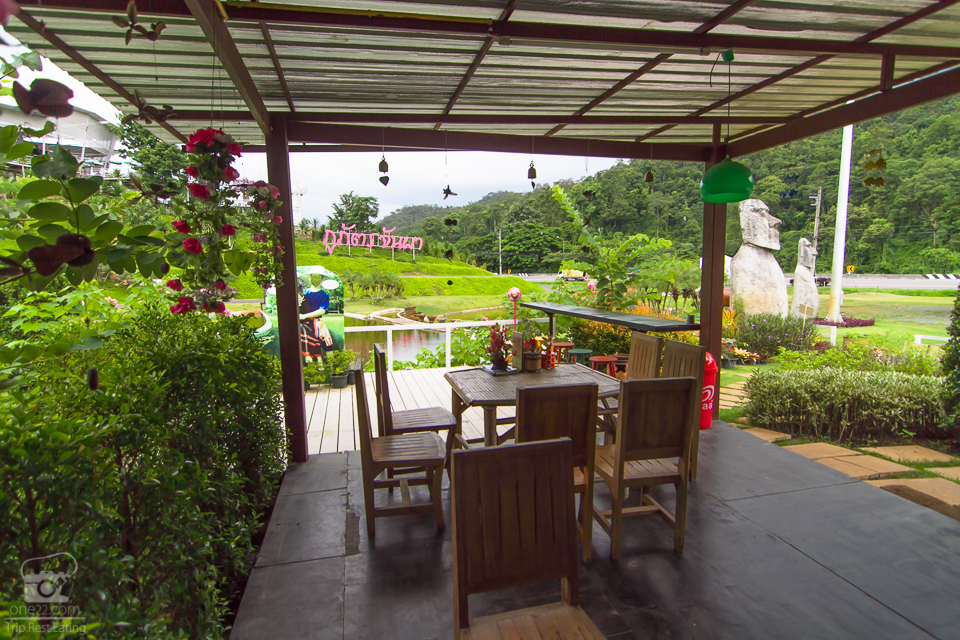 ด้านในจะมีเฉลียงยื่นออกไปรับบรรยากาศขุนเขาตรงหน้า แขกเองส่วนใหญ่ก็ชื่นชอบทานอาหารกันที่นี่มากสุดนะครับ