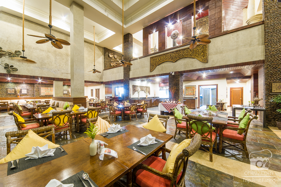 มาถึงอาหารบ้าง ที่ห้องอาหารเน้นความสูงเป็นอีกที่ๆวิวงามไม่แพ้กัน The Terrace Restaurant เป็นห้องอาหารหลักของรีสอร์ท ตกแต่งอลังการเป็นไปในแบบบ้านในป่าใหญ่ทั้งแข็งแรง ดูสวยงาม