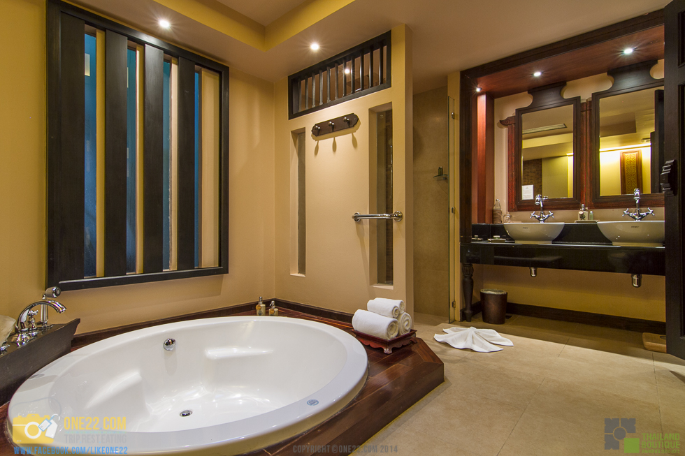 มาดูในห้องน้ำกันบ้าง เปิดประตูเข้าไปด้านในจะเจอ อ่างอาบน้ทรงกลม นอนแช่สบายมากๆ ผมลองมาแล้ว