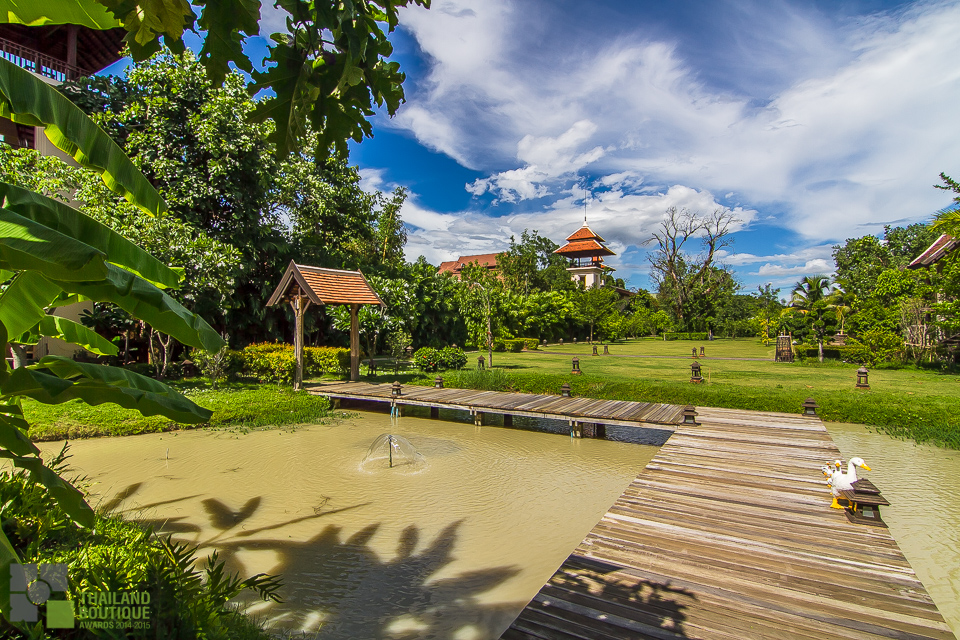 พ้นทางเดินด้านข้างเองยังมีอะไรให้แปลกใจได้อีกนะครับ เพราะจะเจอแปลงข้าว แปลงผัก ทำให้รู้ว่าที่นี่ให้ความสำคัญกับการท่องเที่ยวแบบล้านนาไทยและหยิบเรื่องราวการเพาะปลูกข้าวมาทำเป็นกิจกรรมให้กับแขกได้เรียนรู้วิธีการปลูกข้าวแบบไทยๆของเรา เป็นกิจกรรมที่ฝรั่งถูกใจแน่นอน