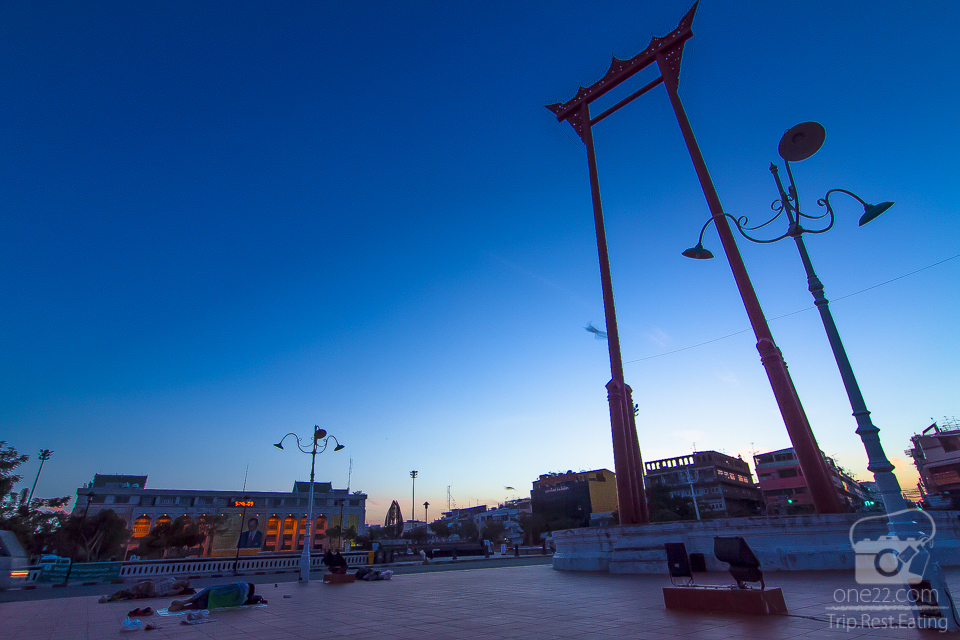 ถัดมาจนถึงเสาชิงช้า บรรยากาศยามเช้า อาจจะเจอทั้งผู้คนที่อาศัยเป็นที่หลับนอน และบางคนก็พึ่งตื่นขึ้นมาใช้ชีวิตรับวันใหม่กัน
