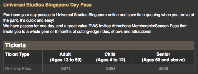 และถ้าคุณอยากมีตัวช่วยขั้นเทพในการเข้า USS และเครื่องเล่นในแต่ละประเภทได้รวดเร็วแล้วละก็การซื้อ บัตร Express ก็เป็นตัวช่วยที่ดีมากๆ ปรกติตอนเช้าๆคิวจะยาวเป็นปรกติเพราะทุกคนจะพยายามมาแต่เช้ากันทั้งนั้น เพราะอะไรนะเหรอ ราคาไงครับ ตั๋วปรกติจะราคา 74 S$ (ดอลล่าห์สิงคโปร์) หากซื้อแบบโปรจะลดราคาได้อีก ดูช่วงอายุและราคาตามภาพเลยครับ โชคดีถ้าคุณซื้อตั๋ว Nokscoot มานั้นก็คือคุณประหยัดตั๋วไปถีง สองใบอันนี้ย้ำเลยว่า work สุดๆครับ