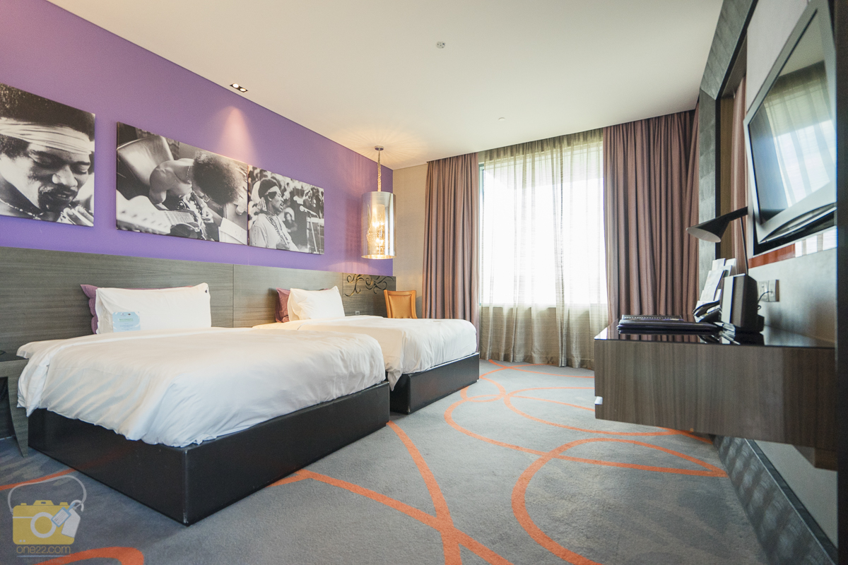 โรงแรมที่ๆเราเลือกคือที่ Hardrock Hotel @ Singapore มาดูห้องพักกันเลย ห้องที่ได้จะเป็น ห้อง Type Deluxe ได้ห้องมุมเลย