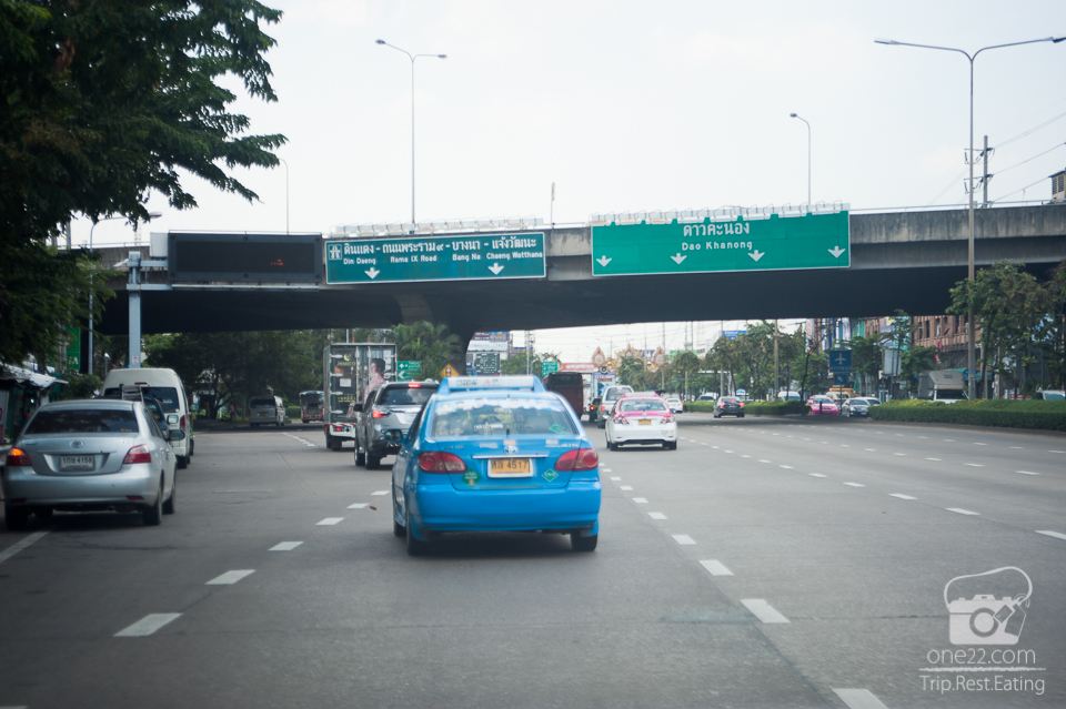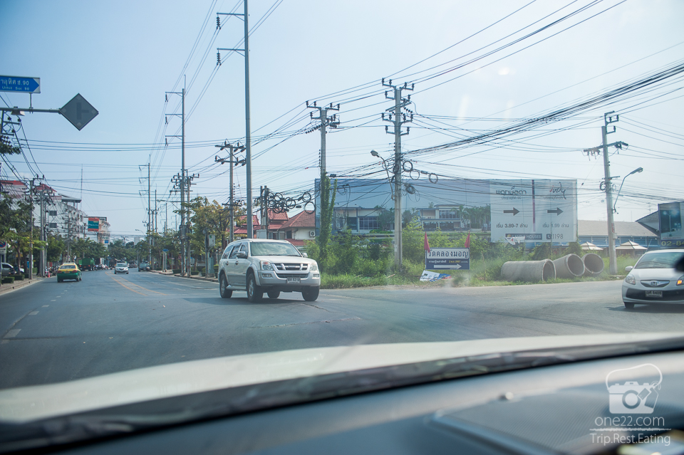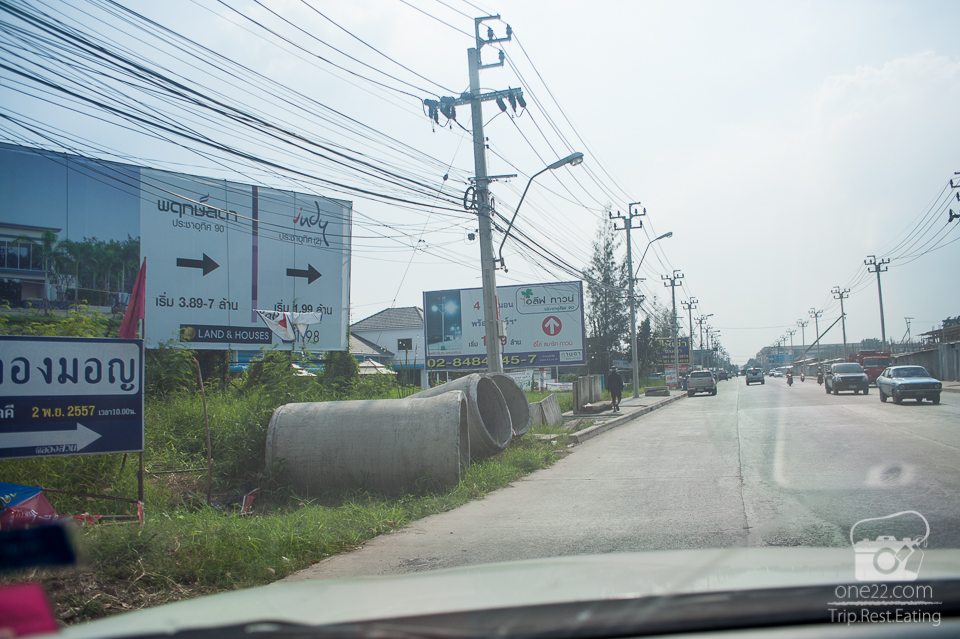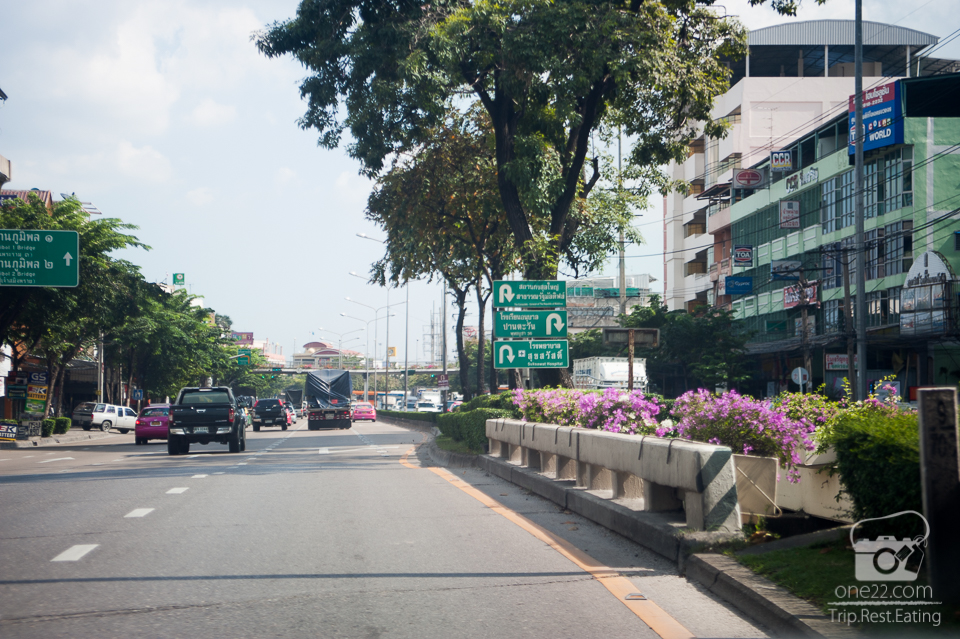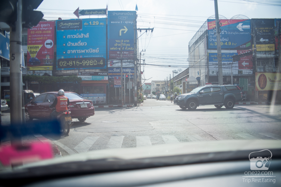 สังเกตุทางขวาไว้จนเจอป้ายบ้านพฤกษ์ลดา และไปทางเดียวกับวัดคลองมอญ