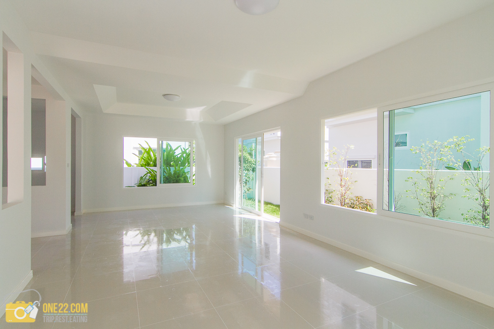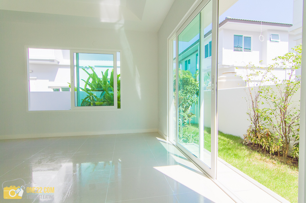 พื้นที่ห้องรับแขกก็กว้างมาก แสงแดดเปิดรับจากหน้าต่างและมีประตูข้างไว้ด้วย