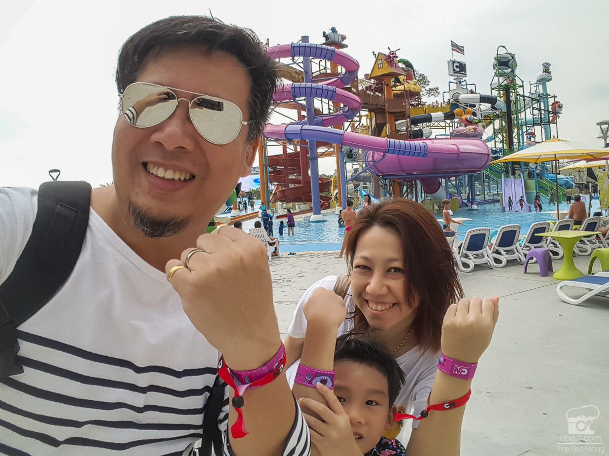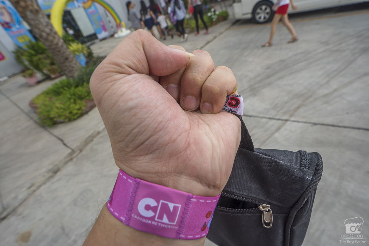 หลังจากจ่ายตังเราจะได้ตั๋วมาในรูปแบบ Wristband หากซื้อผ่านโรงแรมเราจะได้เป็นสีชมพูแบบบ้านเราเลย แต่ถ้าซื้อกันข้างหน้าจะเป็นสีน้ำเงิน ตัว listband เองเป็นทุกอย่างของที่นี่เลย จะผ่านประตู กินข้าว เติมเงินสะดวกมากครับ และดูเท่ดีทีเดียว
