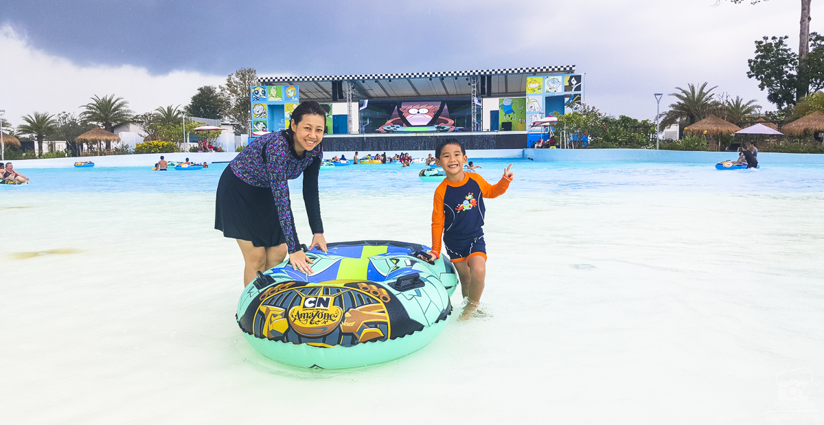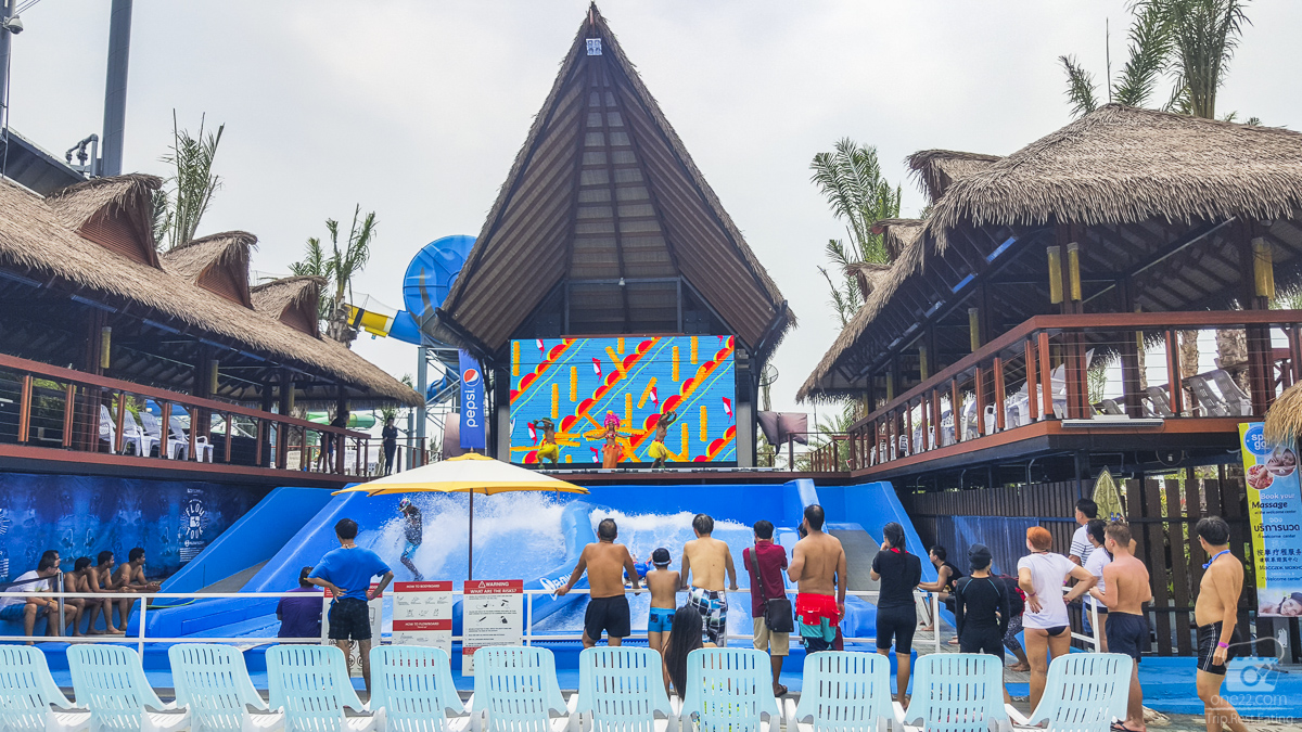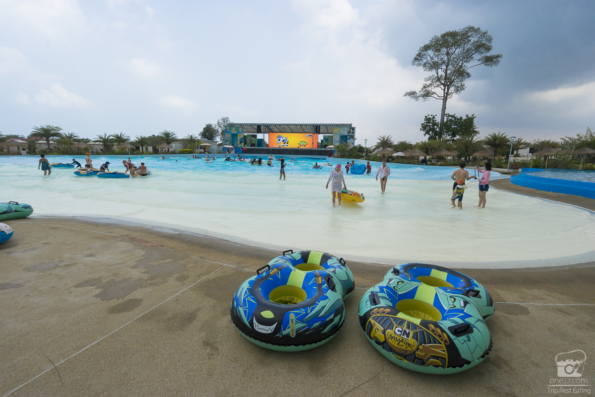 มาถึงอีกหนึ่งตัวที่เหมาะกับเด็กทุกเพศวัยเช่นกัน และที่สำคัญผมว่ามันสนุกกันได้เหมาะกับทั้งเด็กเล็กและผู้สูงวัยเลย ” Mega Wave ” ชายหาดจำลองที่มีกลไกสร้างระลอกคลื่นให้กับผู้เล่นทุกคน สนุกมากเพราะทางสวนน้ำก็มีบริการตัวแพและห่วงยาง รวมถึงถ้าเด็กๆก็จะบังคับให้สวมชูชีพกันก่อนลงไปเล่นครับ ตัวนี้บ้านเราเล่นกันไม่เบื่อง่ายๆเลย สนุกมาก