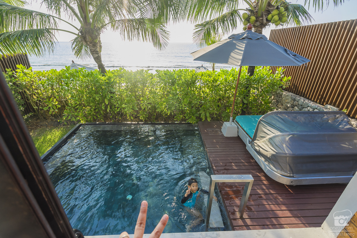 เข้ามาภายในห้องพักยิ่งทำให้ผมประทับใจมากขึ้นไปอีก ห้องพักแบบ Beach Front Pool Villa พร้อมสระว่ายน้ำ ขนาดไม่ได้เล็กแต่ไม่ได้ใหญ่มากหากเทียบกับ Type อื่นๆคือ 48 ตรม. แต่ถ้าเอารวมกับพื้นที่ทั้งหมดทั้งภายในภายนอกก็ 70 ตรม.เล่นเอาเด็กน้อยตื่นเต้นกว่าพ่อเค้าซะอีกนะครับ