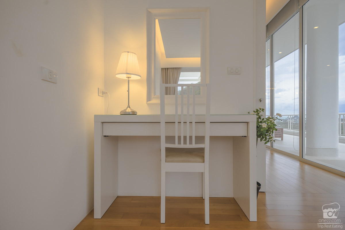 มีโต๊ะเครื่องแป้งหรือจะเป็นโต๊ะนั่ง (แอบ) ทำงานของคุณพ่อ คุณแม่ ก็ยังได้แต่เอาจริงๆ อย่าทำเลยพักผ่อนดีกว่าครับ