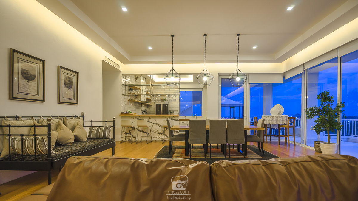 ถัดมาอีกมุมของห้อง จะวางเป็นโต๊ะทานข้าวแบบ 6-8 คนไว้ สามารถนั่งสังสรรค์ปาร์ตี้ สวนเสเฮฮากันในครอบครัวได้เลย และตรงนี้ล่ะครับที่เป็นฐานของพ่อๆแม่ๆทุกคนไว้นั่งเม๊าท์มอยกันตลอดทริปนี้เลย