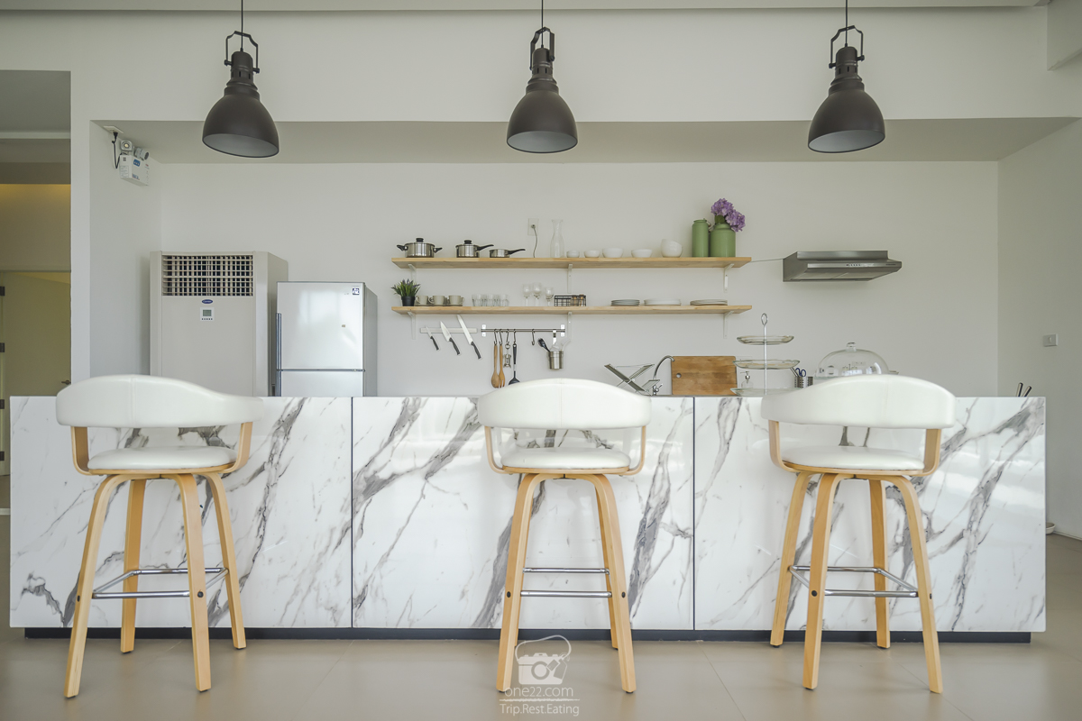 เรียกว่าเหมาะด้วยประการทั้งปวงสำหรับการทำอาหารกินกันเองหรือจะมีปาร์ตี้กันในแบบเพื่อนฝูงหรือ ครอบครัวแบบส่วนตัวได้เลย และที่นี่มีของทานเติมไว้ให้ ทั้งขนมปัง ใส่กรอก อยู่ในตู่เย็นพร้อมสรรพ