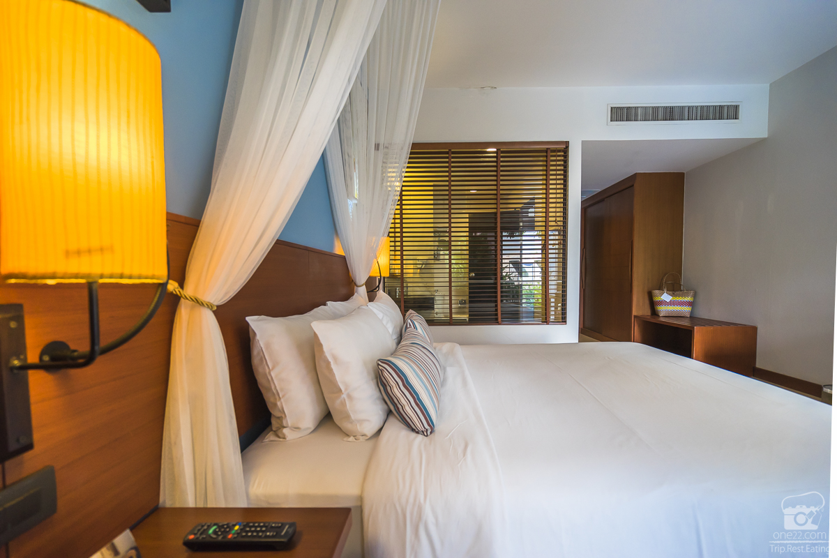 บรรยากาศดีงาม สีหวาน โทนชอบ แนวๆ Pastel แบบนี้สาวๆน่าจะชอบ ยิ่งมารวมกับห้องที่ติดสระว่ายน้ำยาววๆแบบนี้ด้วยนะ