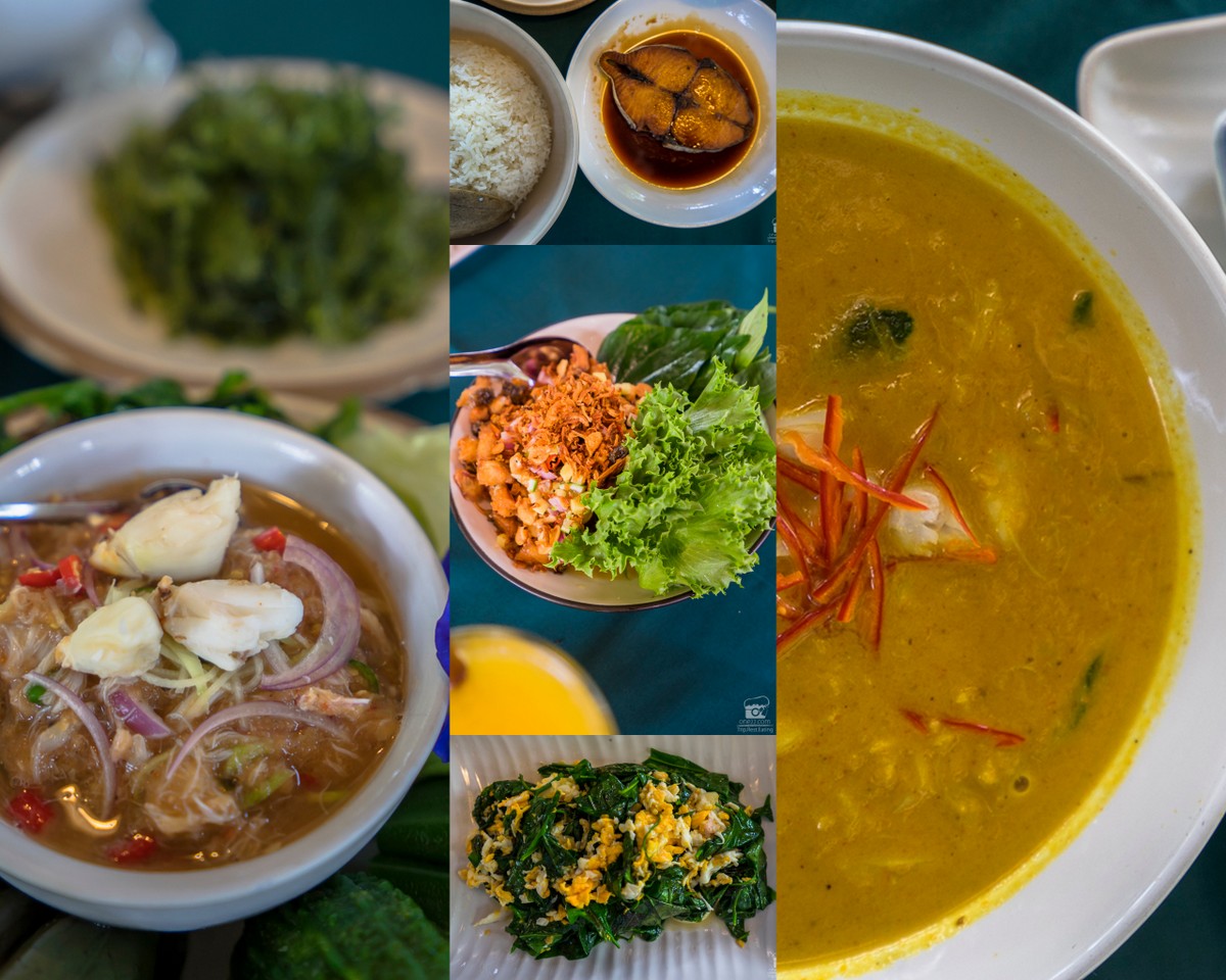 นั่งกันไม่นาน อาหารใต้หลากสีสัน รสชาติก็ดีมากจัดจ้าน ทั้งแกงปู แกงส้ม น้ำพริกปูเน้นๆคำๆกันไป ผัดเหลียงผัดไขอร่อยมากก และสาหร่ายพวงองุ่น ที่หากินได้ง่ายมากทางใต้บ้านเรา อันนี้แนะนำเลยนะ ไฮไลท์ สั่งกันเหอะอร่อยเค็มๆมันๆทานกับน้ำพริกนี้เด็ดสุด ไหนจะปลาอินทรีย์ทอดน้ำปลา จัดมาไม่แข็งเลยย