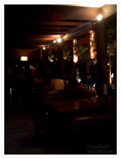ร้านเป็นบ้านไม้ 2ชั้น ตกแต่งด้วย เฟอร์ฯสไตล์ ไทยๆประยุกต์ แต่ที่สุดยอดจริงๆผมว่าอยู่ที่การจัดแสงครับ โรแมนติกมาก มีมุมสวยๆที่ถ่ายรูปได้เยอะจริงๆ (เสียดายไม่ได้เอากล้องไปเลยใช้กล้องมือถือถ่ายภาพเลยมืดๆขออภัยนะครับ ) จะว่าไปร้าน บ้านระเบียงน้ำ นี้ผมว่าเป็นร้านในฝันของคนชอบความเป็นส่วนตัว มีมุมสงบๆให้คุณได้นั่ง กับ คนรู้ใจ หรือจะสังสรรค์กันกับเพื่อนฝูงก็ได้ บรรยากาศริมแม่น้ำเจ้าพระยา ที่ใครๆก็น่าจะชอบ ที่สำคัญร้านนี้ถ้าคุณมาตอนเย็นๆ บรรรยากาศตอนพระอาทิตย์ตกคงจะสุดยอดไม่แพ้ใครแน่นอน ที่สำคัญอาหารที่ทานอร่อยครับ รสชาดใช้ได้เลย ผมสั่งเป็น set ลอยกระทงมา ทางร้านจัด set ไว้สำหรับ วันลอยกระทงแบบนี้โดยเฉพาะเลย ราคาก็โอเคล่ะสำหรับวันนี้จะสูงกว่าปรกตินิดหน่อยเนื่องจากเป็น set วันอื่นๆคงไม่เท่าไหร่ (620 สำหรับ 3 คน)