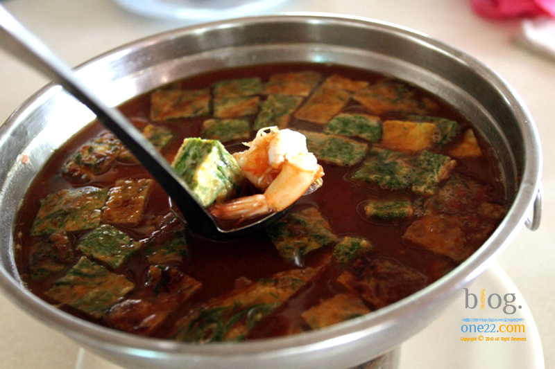 เมนูต่อมา “แกงส้มชะอมกุ้ง” ซดร้อนๆให้โล่งคอ เสิร์ฟมาเป็นหม้อไฟ ตัวชะอมไข่เค้าหั่นเป็นชิ้นลูกเต๋า กุ้งที่นี่สุดครับเพราะเวลาเข้าปากจะมีรสหวานของกุ้งและไม่เล่ะ ส่วนน้ำแกงก็เข้มข้นหอมเครื่องแกง นอกจากนี้น้ำมะขามยังช่วยให้รสกลมกล่อมขึ้นด้วยครับ