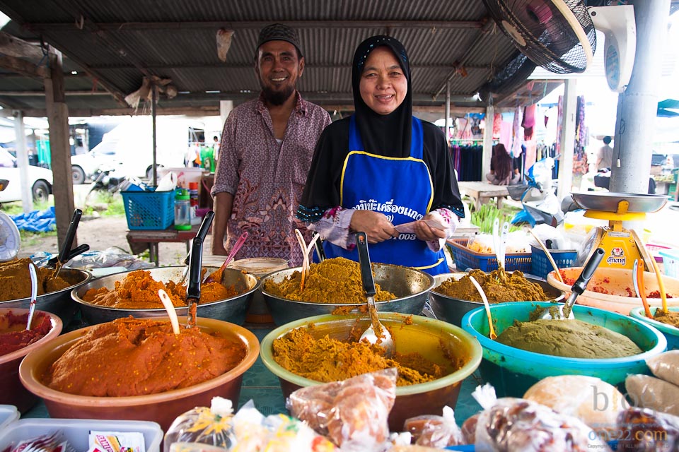 ผมค่อยๆเดินสำรวจไปเรื่อย จนเจอพี่คู่นี่ ที่ขายเครื่องแกงดูน่ากินดี แม้จะไม่ซื้อของพี่เค้า