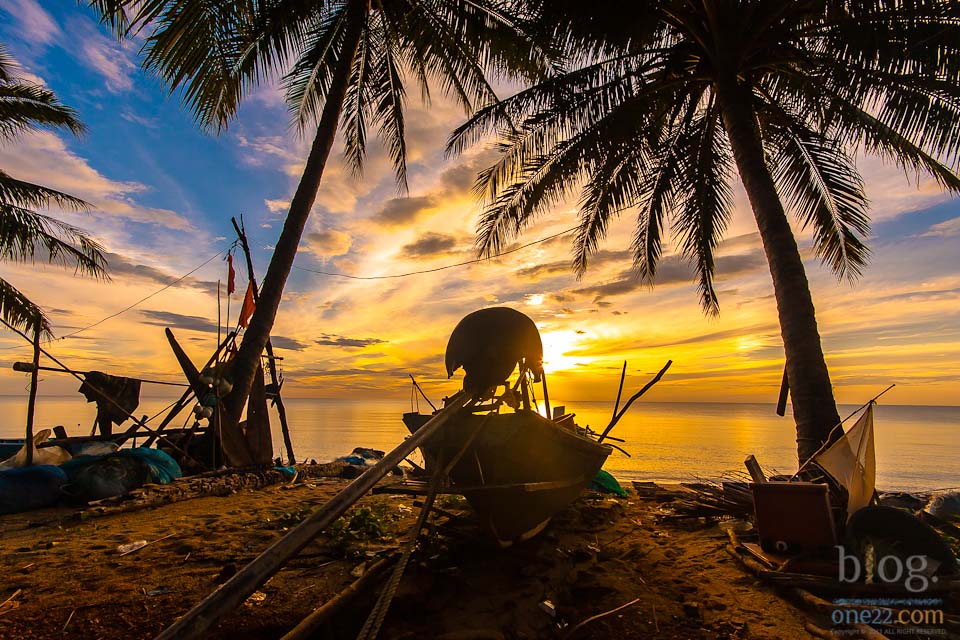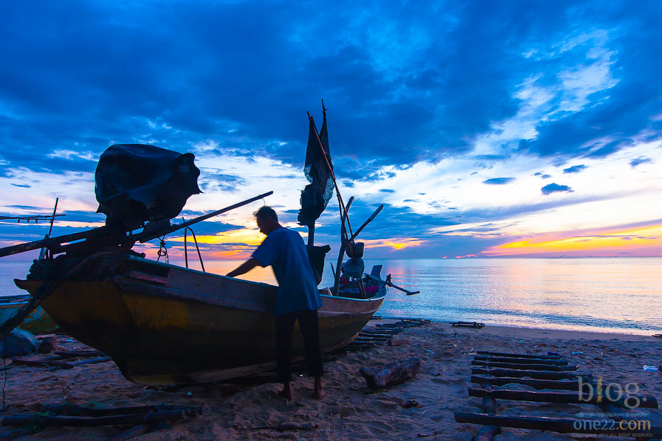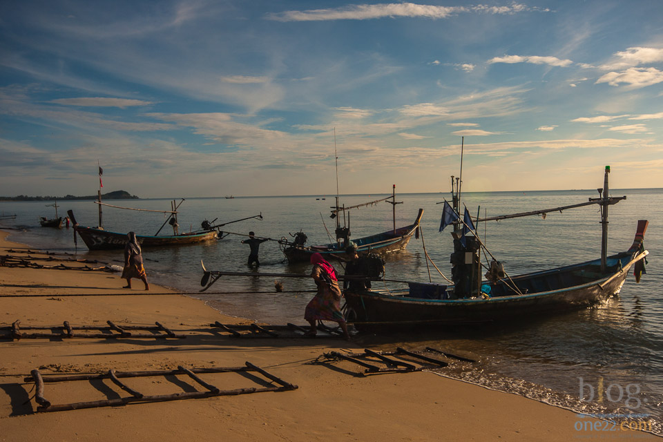 เช้าแบบนี้บริเวณชายหาดบ้านปลายทอนยังไม่มีเรือแล่นกลับมาจากหาปลาที่ออกไปตั้งแต่กลางดึก แถมยังมีบางลำที่พึ่งออกหาปลาก็ยังมี
