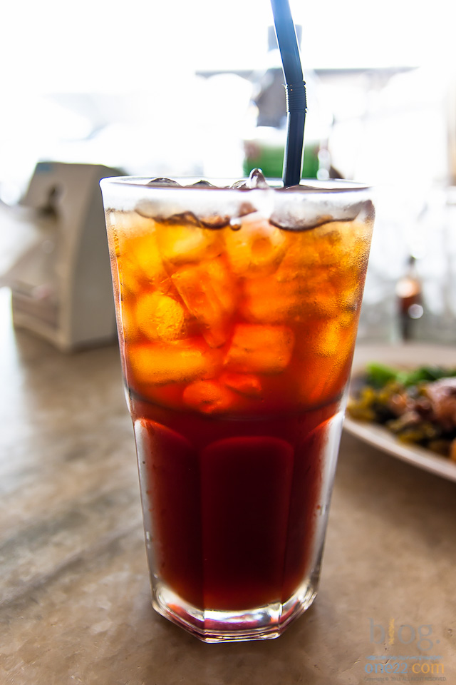 เรามาถึงบ่ายแก่ๆแล้ว ไม่มีปัญหาเรื่องโต๊ะเก้าอี้อย่างที่เคยอ่านๆมา คนน้อย เลยได้มีโอกาสชิมอาหารและกาแฟว่าจะเลิศจริงสมคำร่ำลือรึเปล่าผมสั่งชาดำเย็นมาชิม เยี่ยมมากๆ
