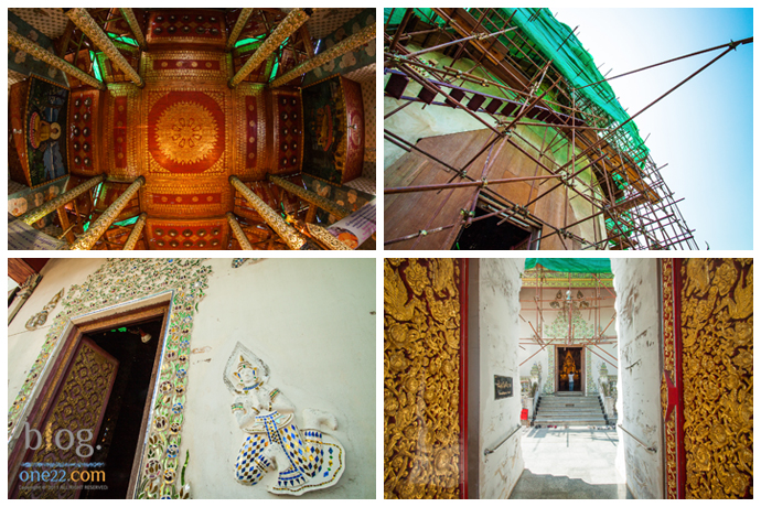 ส่วนพระอุโสถกำลังบูรณะหลังคา แต่ก็สามารถเข้านมัสการพระพุทธด้านในได้ครับ