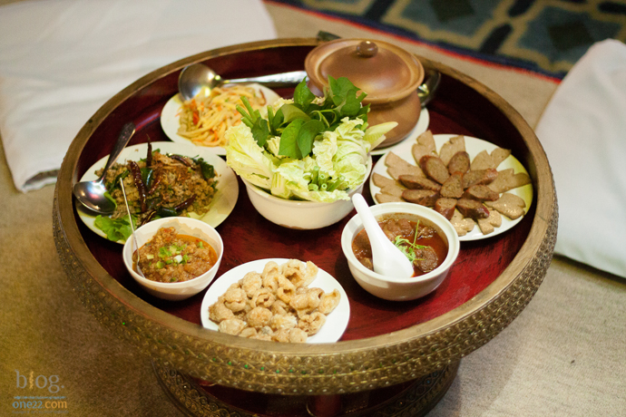 ร่วมรับประทานอาหารมื้อเย็นแบบล้านนา ขันโตก ซึ่งเป็นประเพณีของชาวเหนือที่นิยมปฏิบัติสืบต่อกันมา ตั้งแต่โบราณ