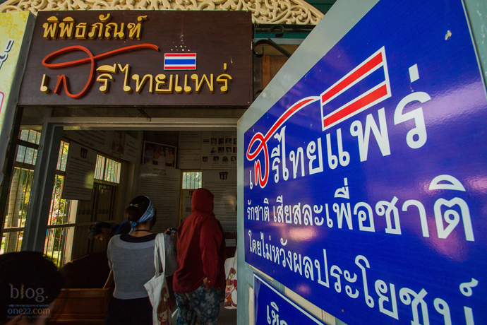 และที่สุดท้ายที่เราจะพาไปก็คือพิพิธภัณฑ์เสรีไทยจังหวัดแพร่ ก่อตั้งขึ้นเมื่อปี พ.ศ. 2550 โดยนายภุชงค์ กันทาธรรม บุตรของนายทอง กันทาธรรม อดีตหัวหน้าเสรีไทย สายแพร่ ก่อตั้งขึ้นเพื่อแสดงเรื่องราวที่สำคัญในอดีตของชาวจังหวัดแพร่ โดนเฉพาะในช่วงที่เกิดขึ้นระหว่างสงครามของเอเชียบูรพา หรือช่วงสงครามโลกครั้งที่ 2 การเสียสละที่ยิ่งใหญ่เพื่อชาติ มีรูปภาพและข้อมูลต่างๆ เกี่ยวกับขบวนการเสรีไทย แสดงถึงความสมัครสมาน สามัคคี ความร่วมมือ ร่วมใจเพื่อประเทศชาติ และเพื่อเป็นการแสดงความเคารพคารวะต่อบรรพบุรุษผู้กล้าหาญของเมืองแพร่ นักท่องเที่ยวสามารถเข้าชมฟรีทุกวัน