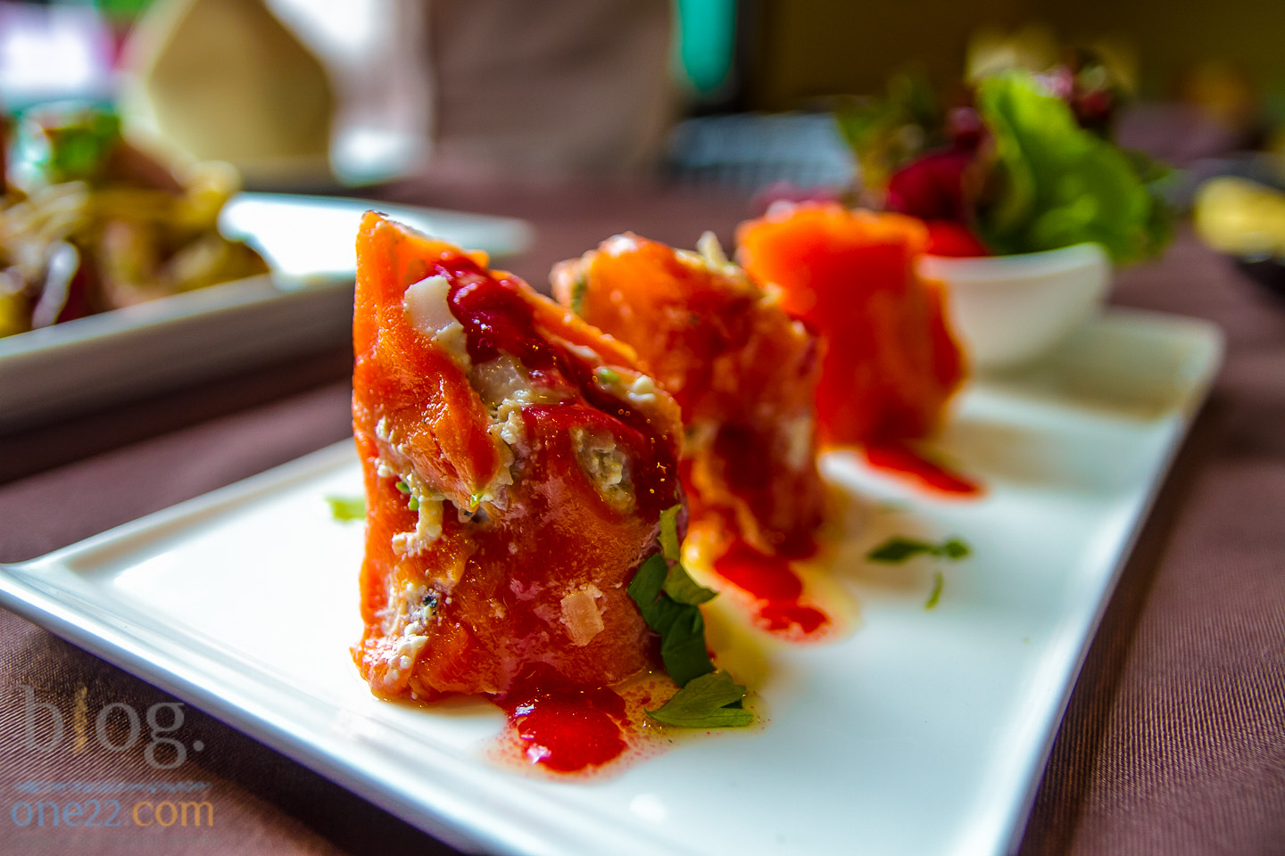 เมนูนี้มีนามว่า : ปลาแซลมอนรมควันห่อซีฟู้ด+ชี