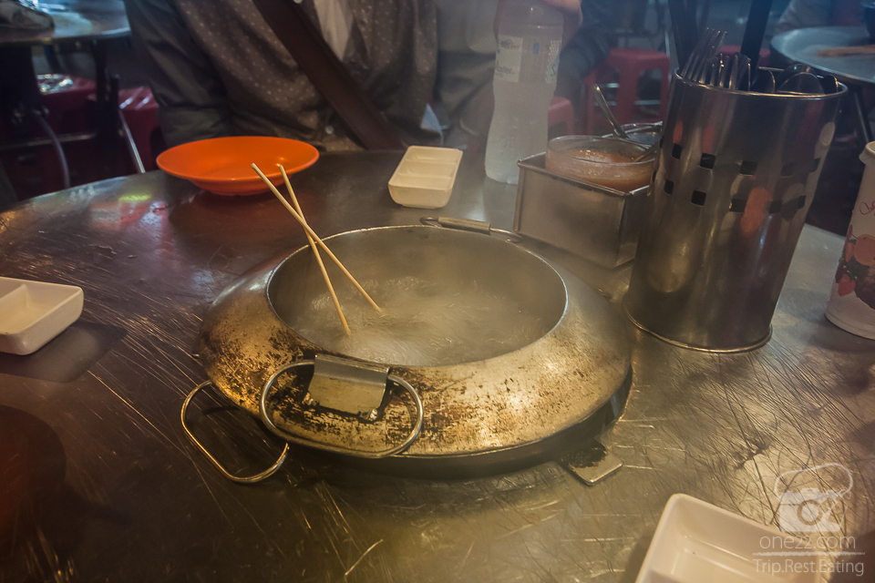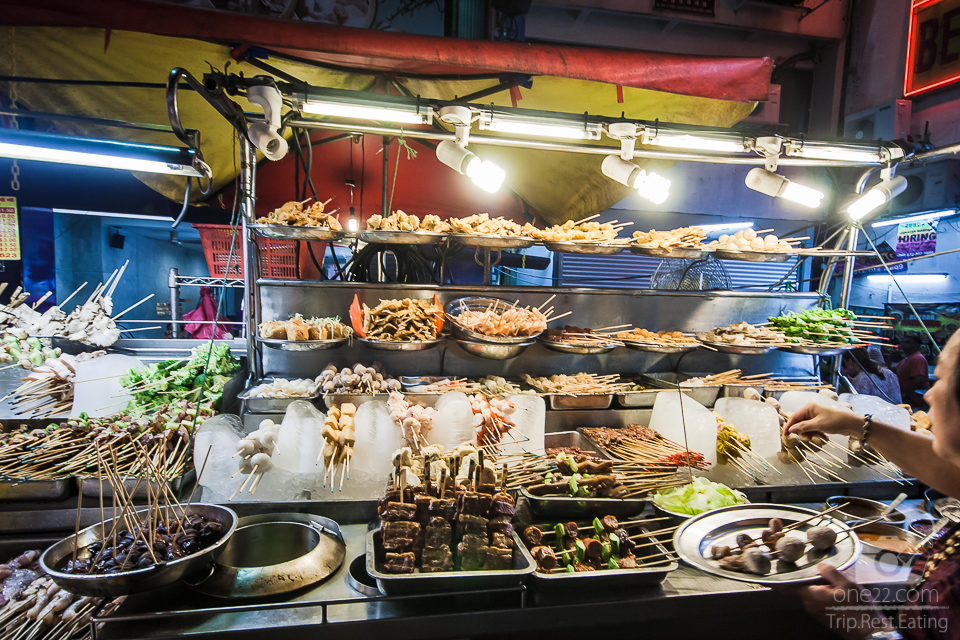 มาถึงร้านที่ดีบุกแนะนำแล้วครับ อาหารเป็นประเภทต้มๆ ในน้ำเดือดปุดๆเชียว เรียกว่า “lok lok ” เวลากินจะต้องมีหม้อสไตล์แบบหม้อสุกี้ที่ต้มน้ำเดือดๆ จากนั้นก็เอาอาหารเสียบไม้ทั้งหลายไปแช่หรือจะเรียกว่าจุ่มกันก็ได้ นะครับ สนนราคาก็เริ่มตั้งแต่ไม้ละ 10-50 บาทแล้วแต่ประเภทของเนื้อสัตว์นั้น ๆ เค้าเสริฟพร้อมน้ำจิ้มสไตล์คล้ายสะเต๊ะบ้านเรา แต่อร่อยมากๆเลย