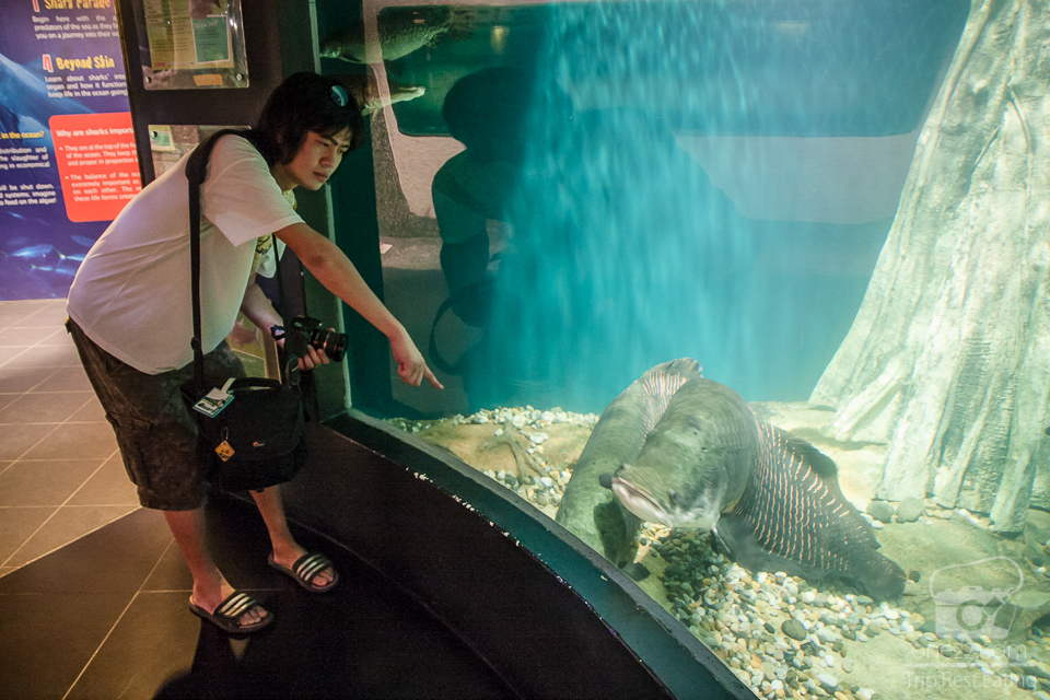 ตัวนี้น่าสนใจมากครับ(ผมจำชื่อแม่นๆไม่ได้ แต่จำได้ว่าขนาดมันใหญ่มากๆเป็นปลาน้ำจืด ดูขนาดเลยครับเทียบกับคนชี้ดูได้เลย)