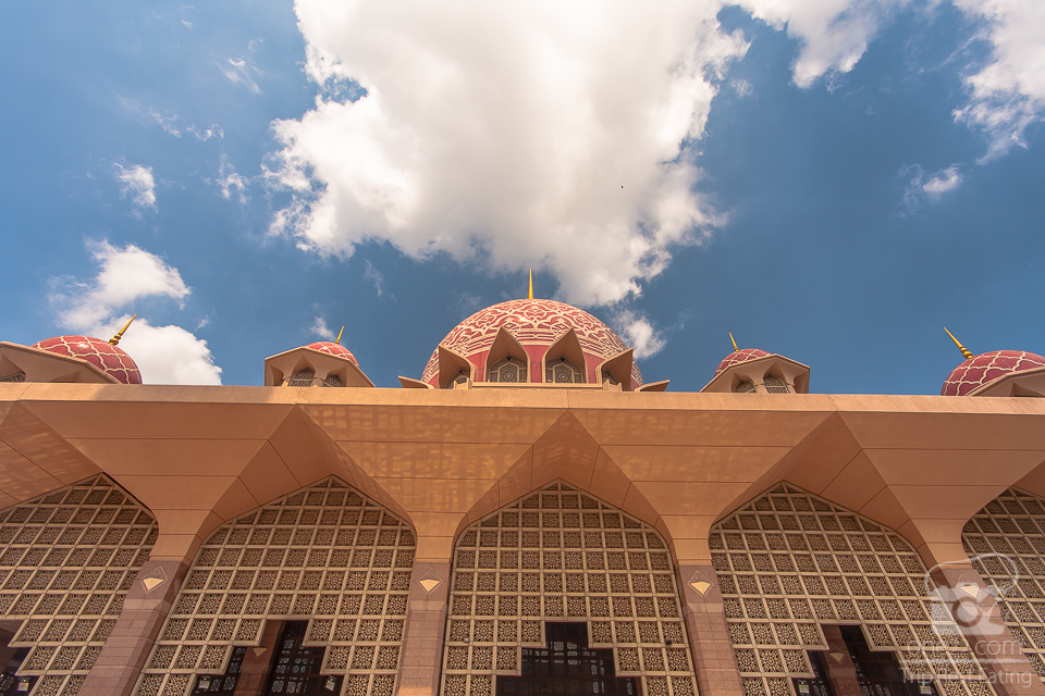 มองจากมุมไหนก็เด่นมากๆครับ มัสยิดปุตราจายา สีชมพูหวานมาก ยิ่งอากาศดีๆแบบนี้ด้วย สวยงดงามทีเดียว ตัวมัสยิดครึ่งนึงสร้างยื่นลงไปในน้ำ มองบางมุมจะรู้สึกเหมือนมัสยิดลอยอยู่บนน้ำเลยทีเดียว